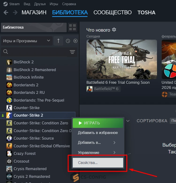 Куда вводить параметры запуска CS2