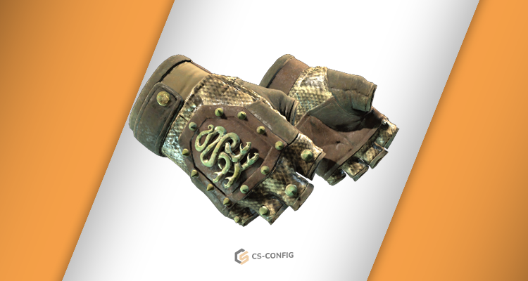 Дизайн этих перчаток вдохновлен внешностью змеи. Тёмно-коричневая кожа с бежевыми узорами, напоминающими чешую, дополняется декоративными шипами. Подойдут игрокам, которые стремятся к грубому, агрессивному стилю, но не хотят тратить крупные суммы.