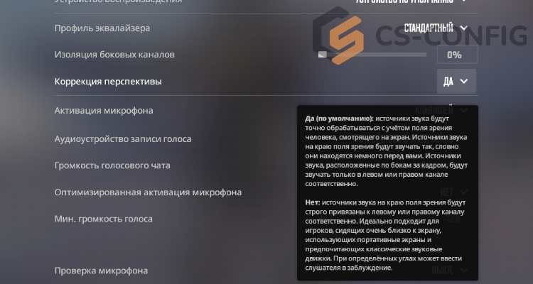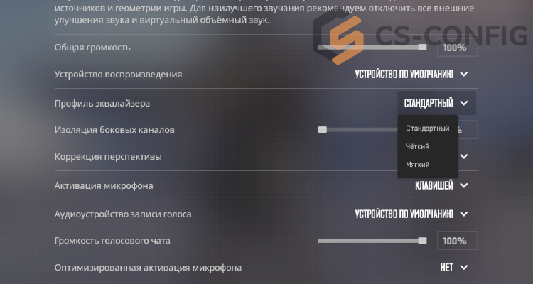 Общие настройки звука CS2