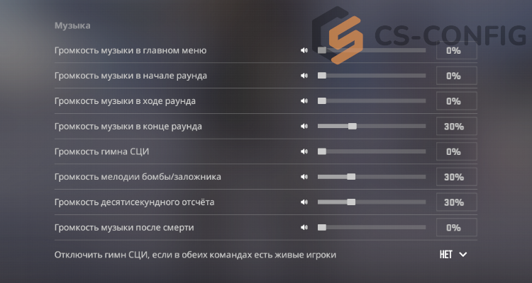 Если ты настраиваешь звук CS2 для соревновательного режима, то вот самый лучший вариант настройки музыки в CS2: