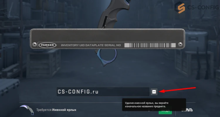 После покупки именного ярлыка он автоматически появляется в инвентаре Steam. Чтобы изменить название оружия, нужно открыть инвентарь, выбрать Name Tag и применить его к нужному предмету.