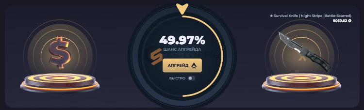 Мне удалось пополнить баланс и я решил проверить выдачу апгрейдов. Для этого использовал баланс с большим процентом на выпадение ножа.