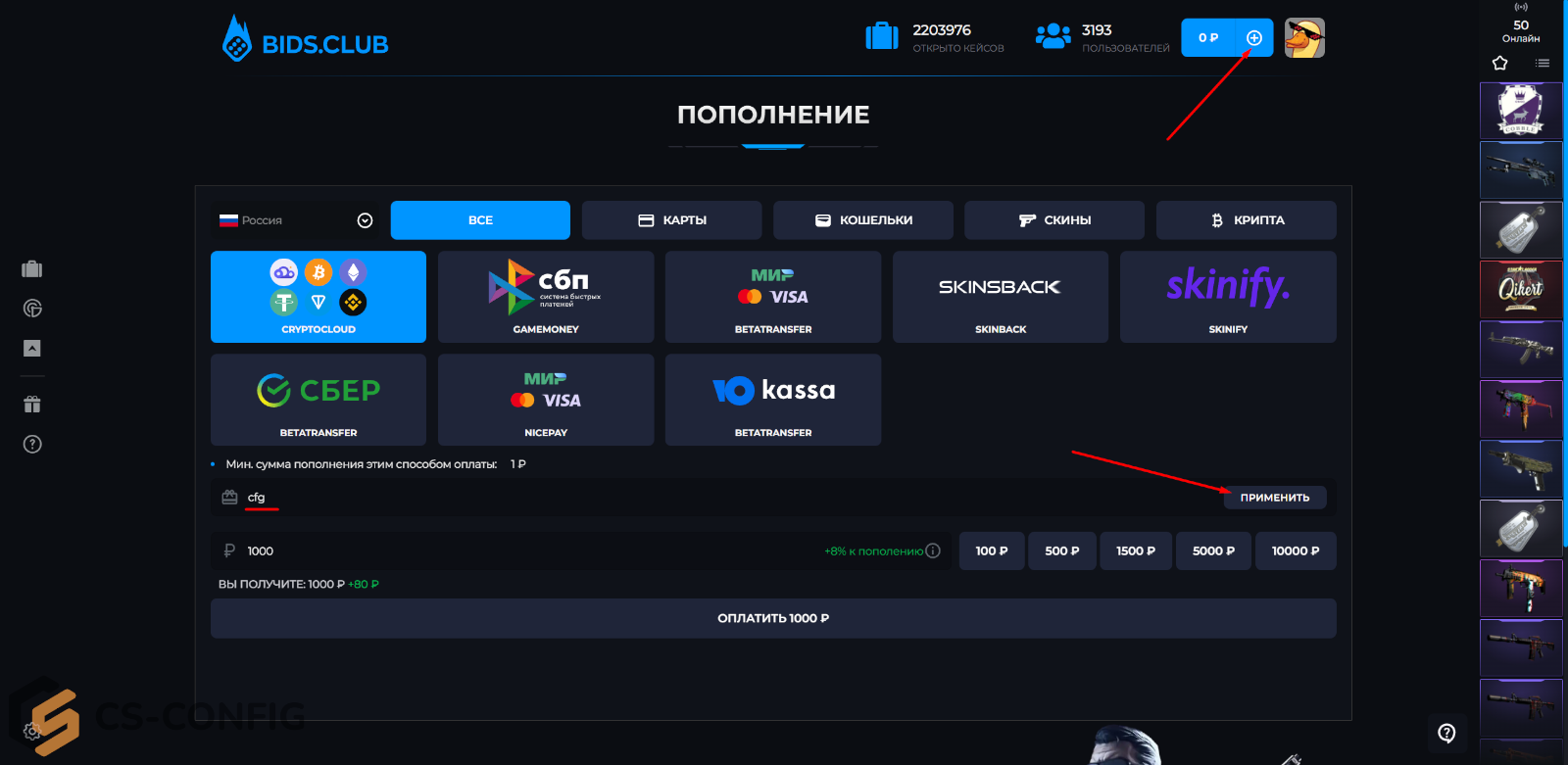 cs2cfg +20 рублей на баланс бидс клаб |