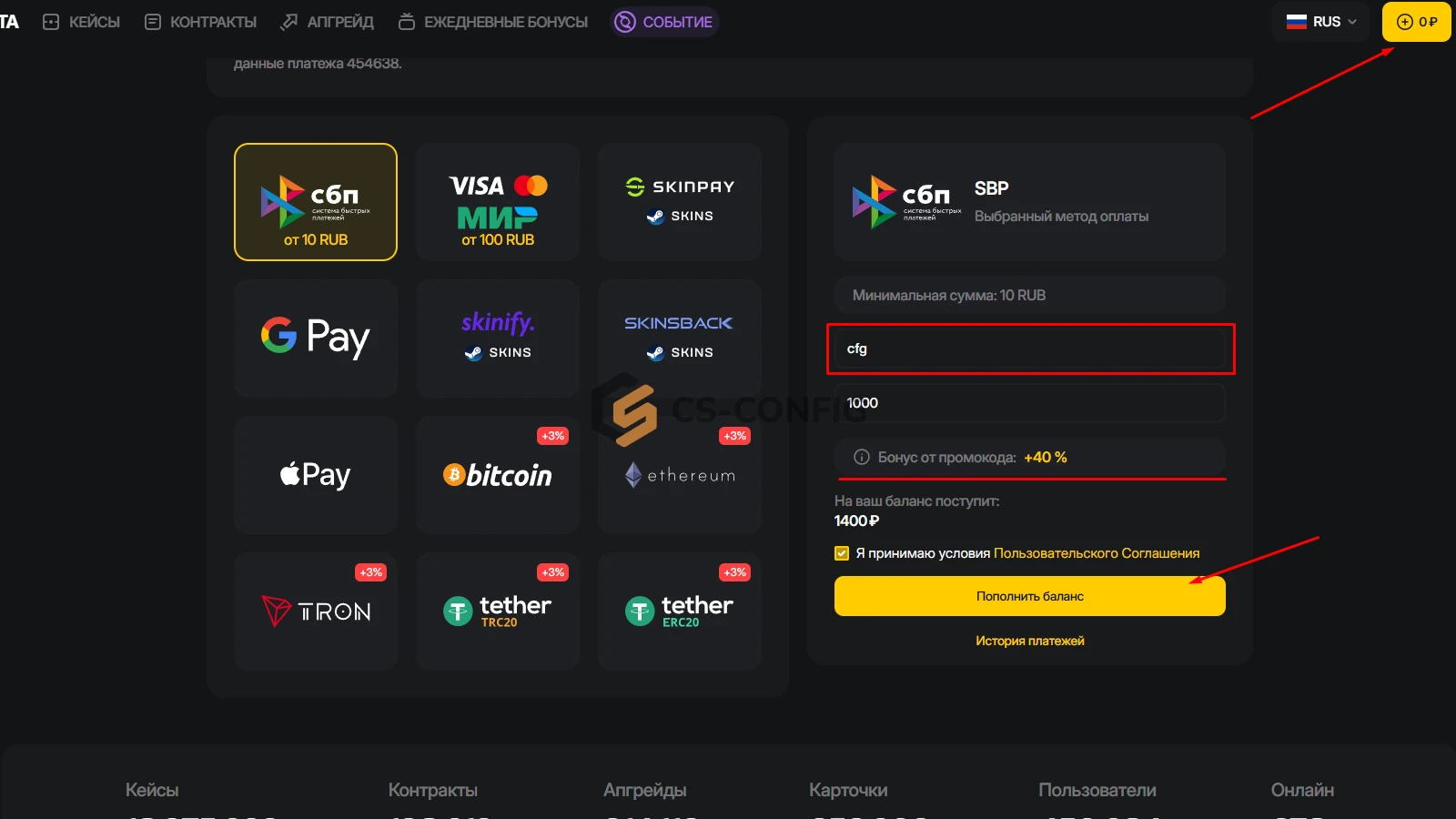 Получи +10% к депу и кейс, пополни скинами моментально на