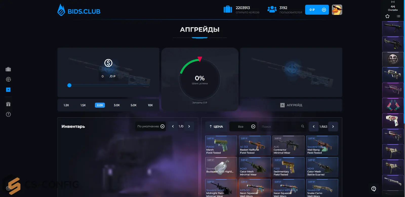 Bids.club — это современный сайт по кейсам, апгрейдам и контрактам скинов из CS2. Проект ориентирован на игроков, которые предпочитают более осознанный подход к инвентарю, а не случайные открытия. Многие пользователи выбирают бидс клаб как удобный инструмент для повышения ценности своих предметов и тестирования стратегий апгрейда.