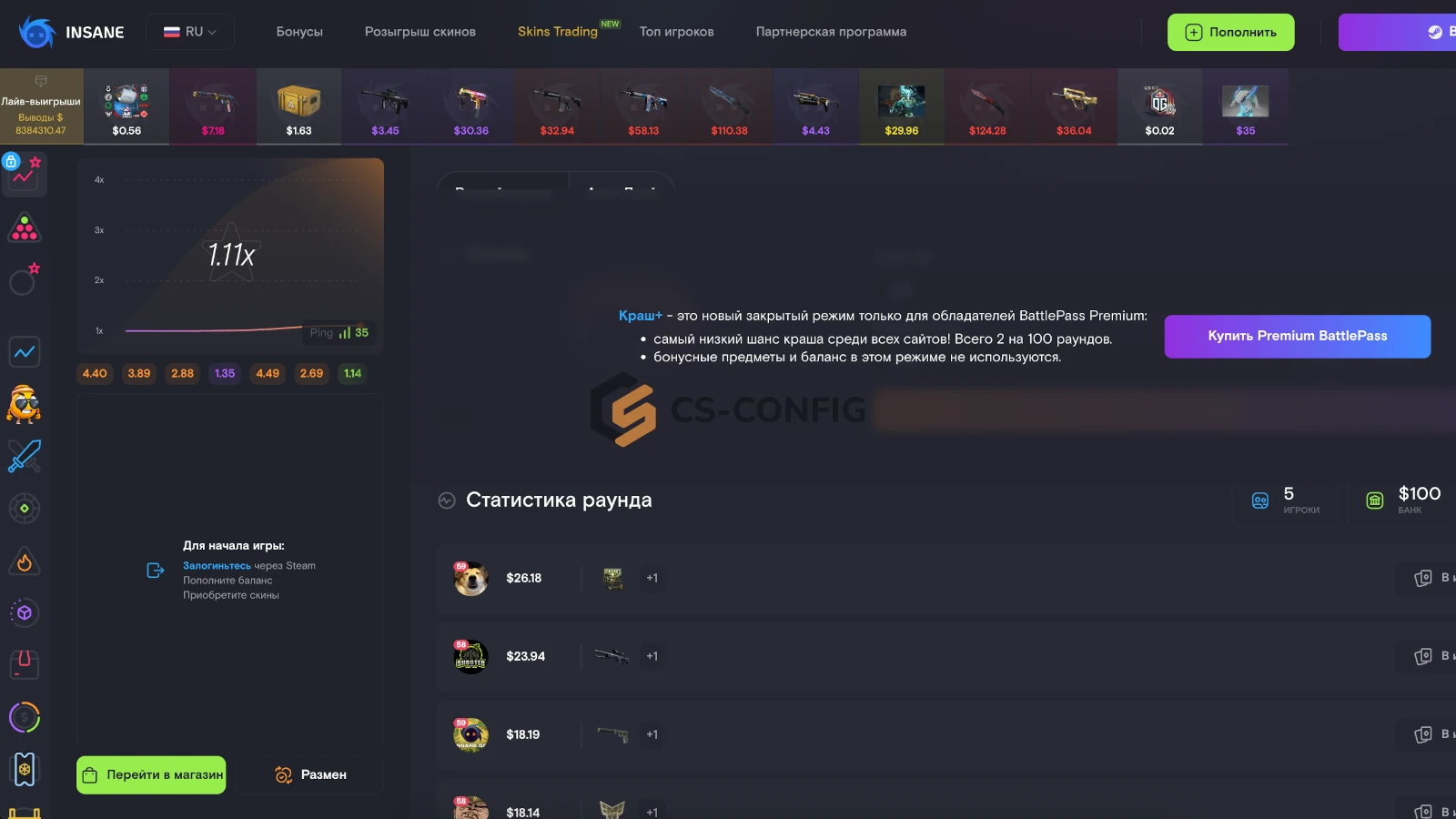Insane - современная игровая платформа с большим выбором бонусов, трейдинг-разделом, кэшбэком и десятками режимов. Бонусы за пополнение, сезонные ивенты и внутренняя биржа делают сайт идеальным выбором для любителей CS2, Dota 2 и Rust.
